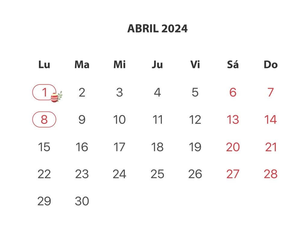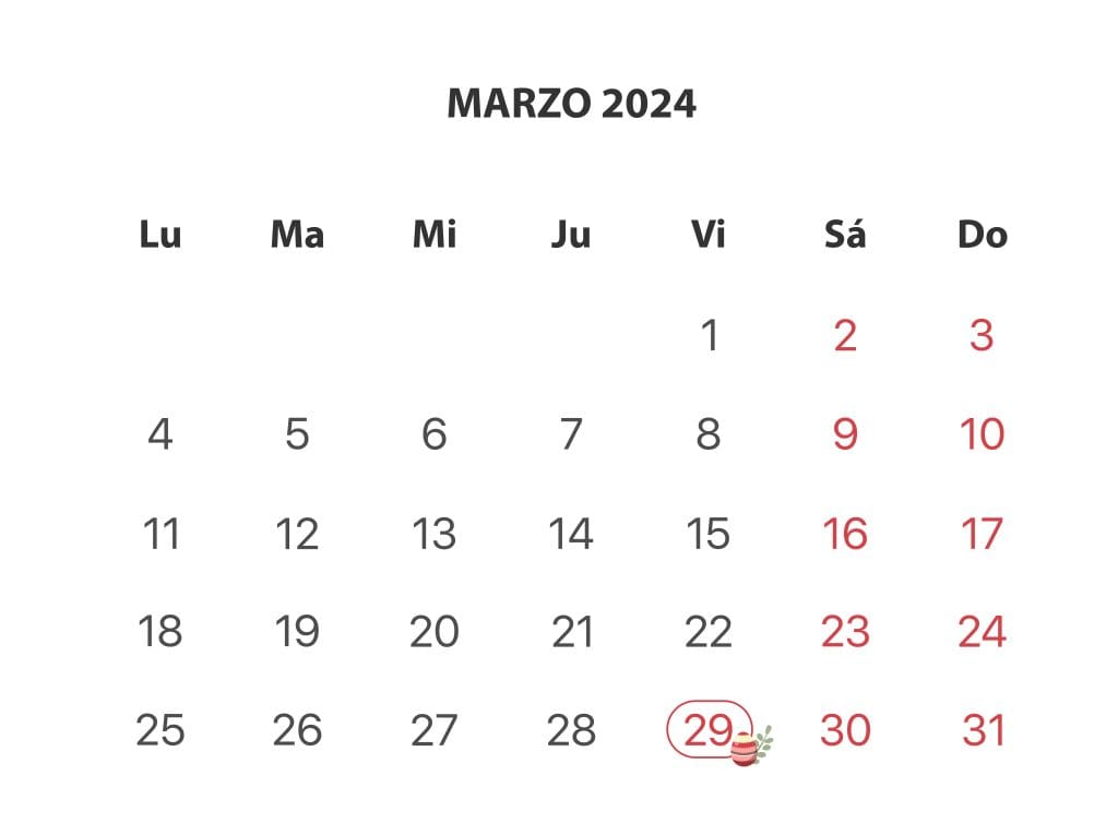 Calendario Marzo-Abril Pascua 2024