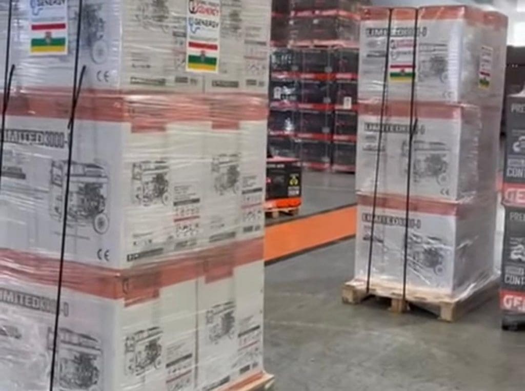 El cargamento solidario incluye 84 generadores portátiles, con potencias que varían entre 1000W y 10.000W, además de 10 hidro-limpiadoras de alta presión y 13 motobombas con capacidades de caudal que van de 30.000LH a 150.000LH.